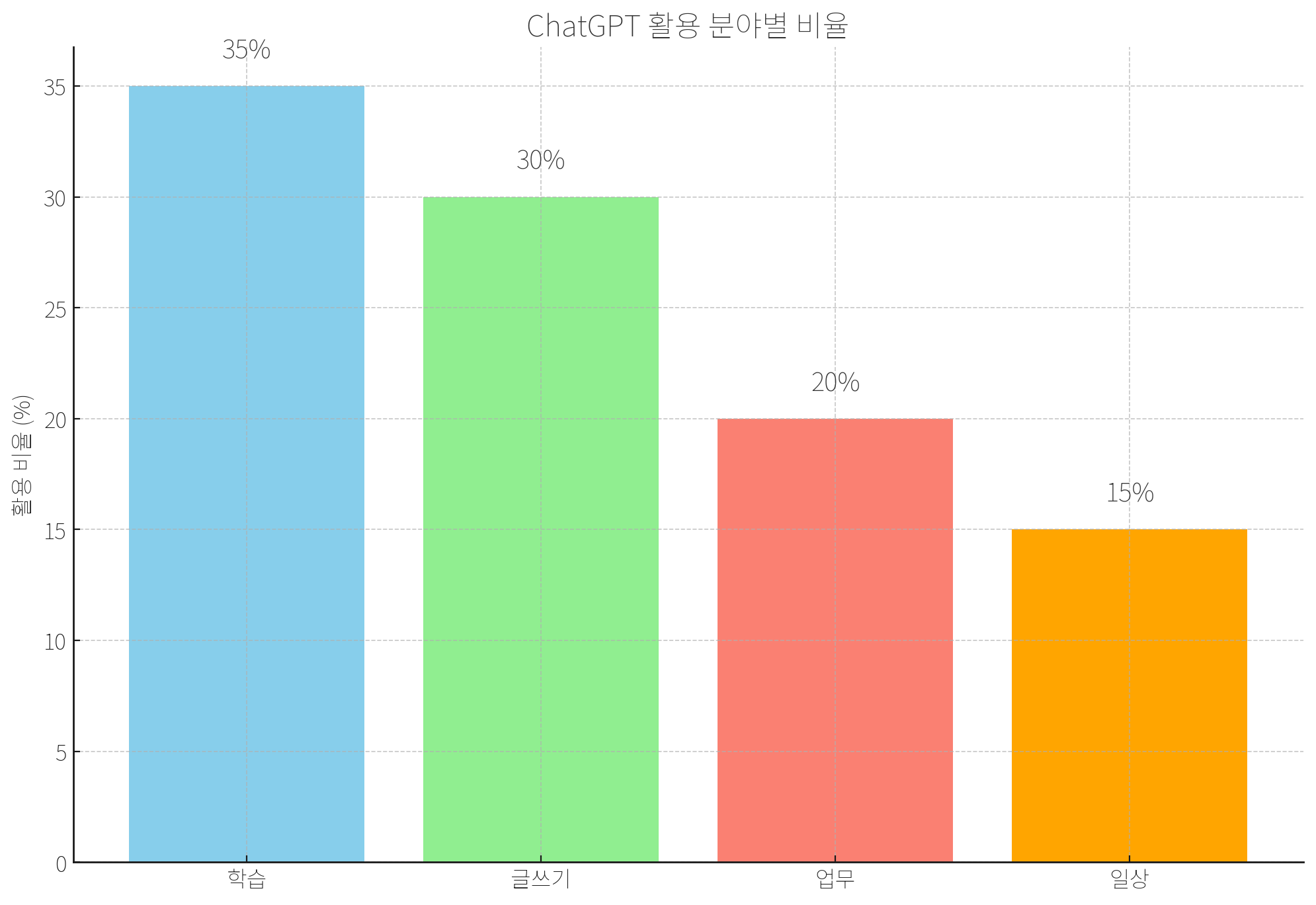 ChatGPT 활용 통계를 살펴보면 학습과 글쓰기에 집중되는 경우가 많지만, 점점 업무와 생활 전반으로 확장되는 추세입니다.