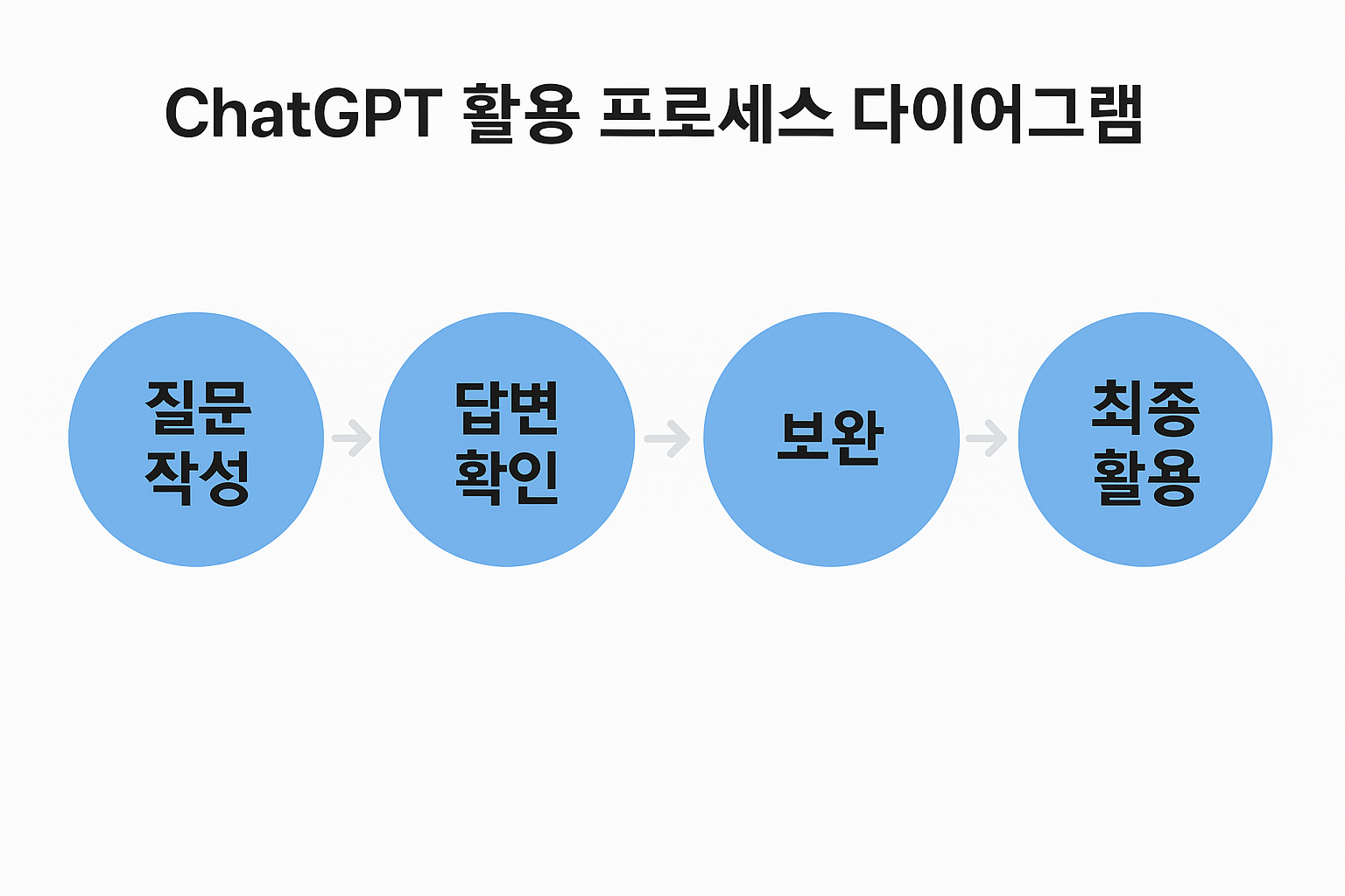질문을 작성하고, 답변을 받은 후, 검토와 보완을 거쳐 최종적으로 활용하는 흐름을 정리해 보면, ChatGPT를 더 효율적으로 사용할 수 있습니다. 특히 초보자는 답변을 무조건 믿기보다, 보완 과정을 반드시 거쳐야 한다는 점을 기억해야 합니다.