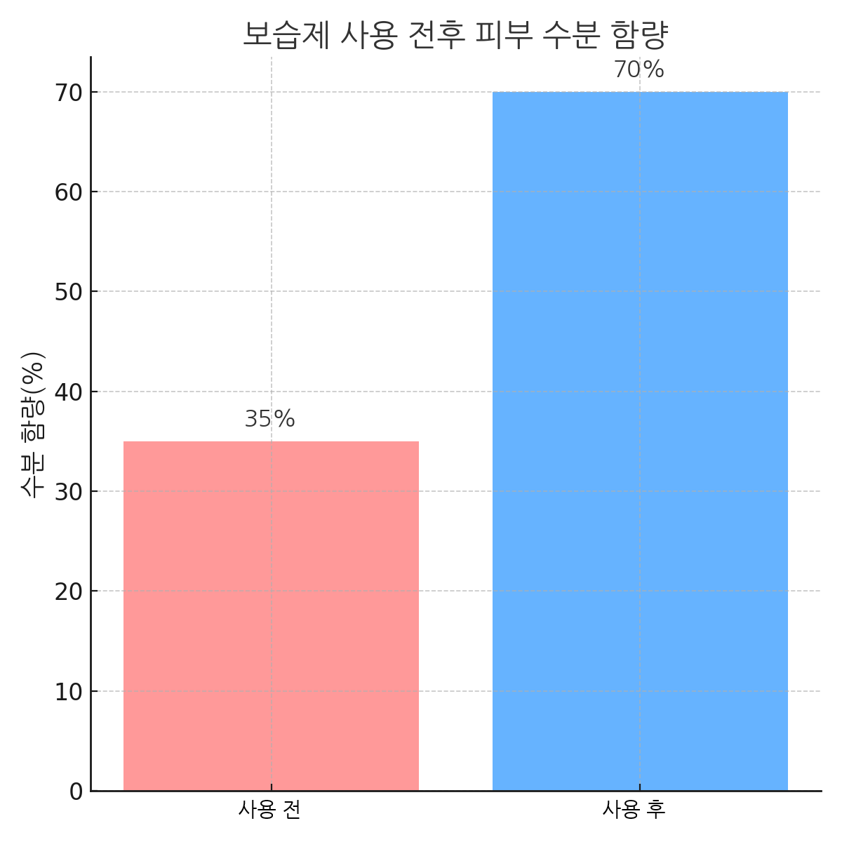 보습제를 바른 전후의 차이를 수치로 확인하면 꾸준한 보습이 피부에 얼마나 큰 영향을 주는지 알 수 있습니다.