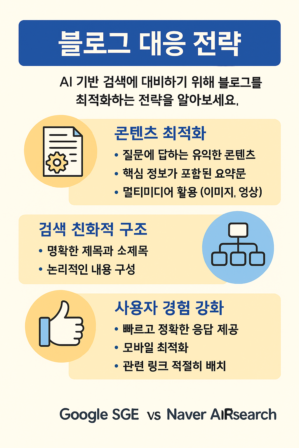 AI 검색 시대에 블로그가 살아남기 위해서는 단순히 SEO 최적화에 머물러서는 부족합니다. 콘텐츠 자체의 신뢰성과 맥락성, 그리고 AI가 인식하기 좋은 구조화가 필요합니다.